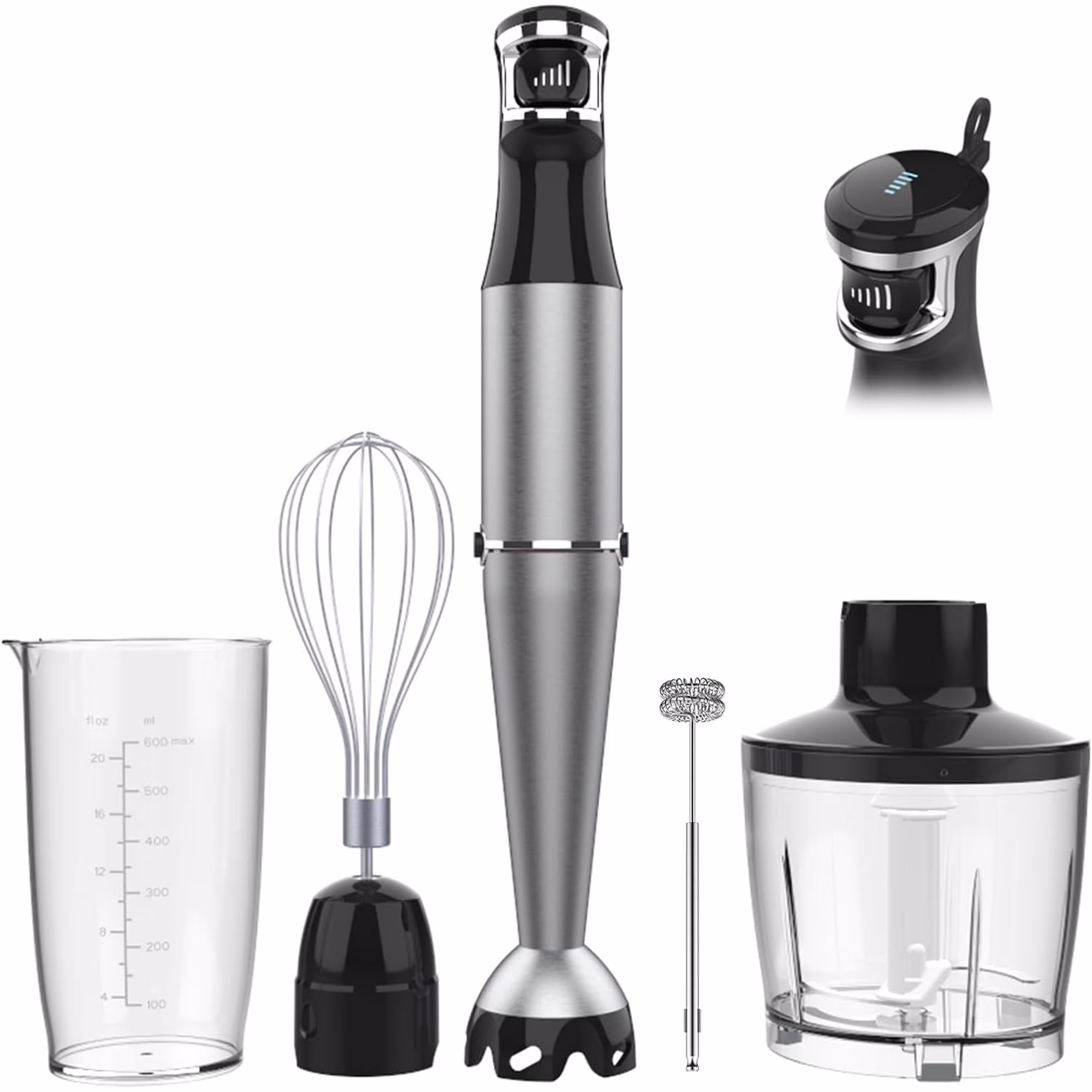 Boyun Daj Immersion Blender Handheld Corded Hand Blender Set is a versatile and practical kitchen tool designed to make everyday food preparation faster and easier. This handheld blender offers the convenience of blending, pureeing, and mixing right in your pot, bowl, or pitcher — eliminating the need to transfer ingredients to a traditional blender and reducing cleanup.Powered by a corded motor, the Boyun Daj Immersion Blender delivers consistent performance for a range of kitchen tasks. It’s ideal for soups, sauces, smoothies, baby food, whipped creams, and dressings, giving you smooth, uniform results with minimal effort. The ergonomic handle ensures a comfortable grip and better control during use, while the lightweight design reduces fatigue for longer blending jobs.This set typically includes multiple attachments — such as a whisk, chopper bowl, and measuring beaker — expanding its functionality beyond basic blending. The whisk is great for eggs, batters, and light creams, while the chopper attachment handles nuts, herbs, onions, or garlic without extra cutting boards or knives. The included beaker or cup provides a convenient container for blending single servings or small batches.Cleanup is simple: most attachments are removable and dishwasher safe, and the shaft can be rinsed quickly after use. The durable construction and quality materials ensure that the blender withstands regular kitchen use, making it a reliable everyday tool.Overall, the Boyun Daj Immersion Blender Handheld Corded Set combines functionality, convenience, and versatility in one compact package. It’s perfect for anyone who cooks frequently, wants to save time in the kitchen, or needs an efficient blending solution without the bulk of countertop blenders. Whether you’re a beginner cook or an experienced chef, this set helps streamline food prep and expand your culinary possibilities.